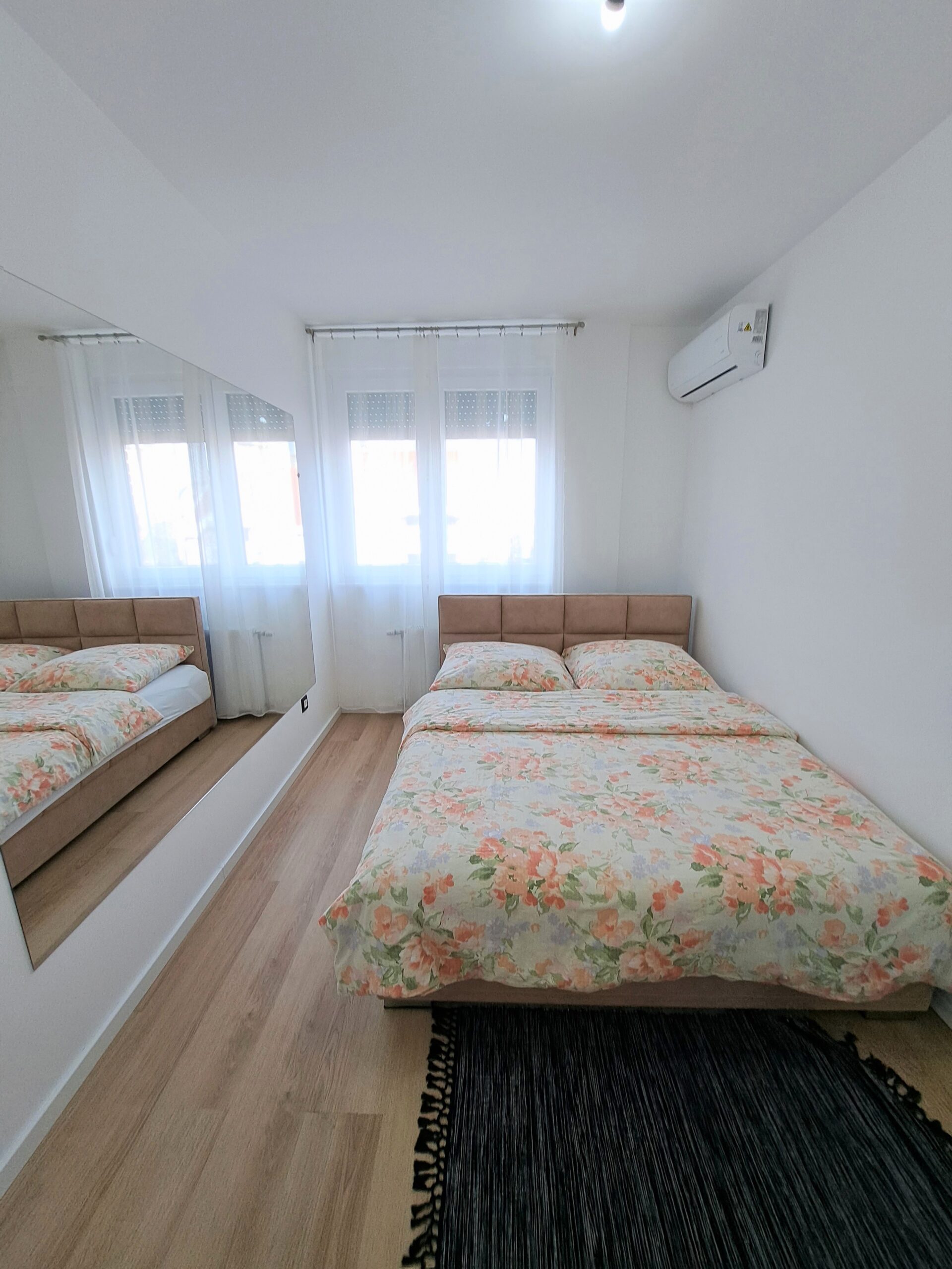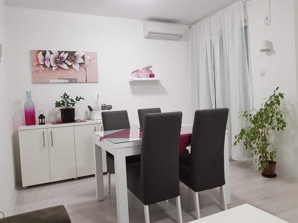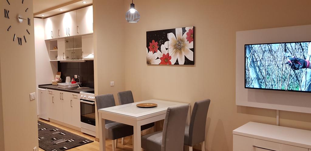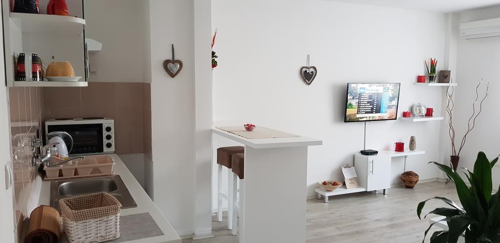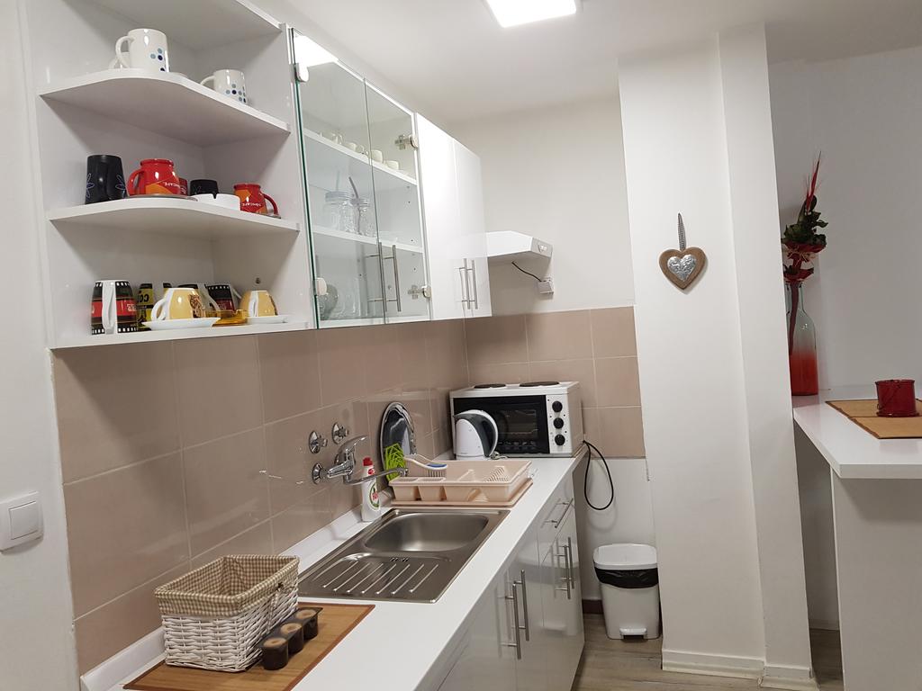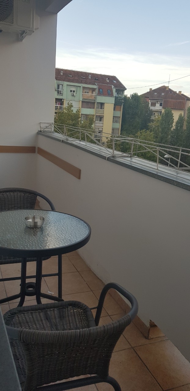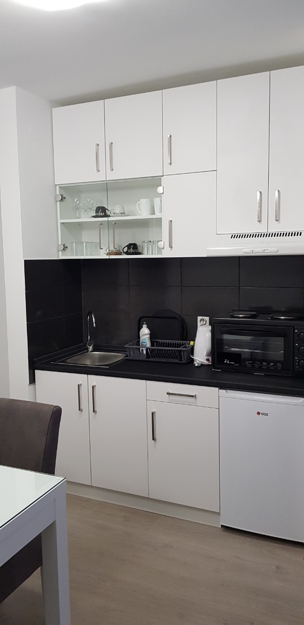 Nov, jednosoban apartman, na prvom spratu zgrade sa liftom, kompletno opremljen, komforan, funkcionalan i pogodan za kvalitetan odmor. Mala terasa gleda u dvorište i parking za stanare zgrade. Okrenut je ka dvorištu i gostima nudi mir, tišinu i uživanje u suncu veći deo dana. Besplatan, javni parking se nalazi duž cele bočne ulice. Sama lokacija je dobro povezana sa centrom grada i mnogim atraktivnim mestima za obilazak.