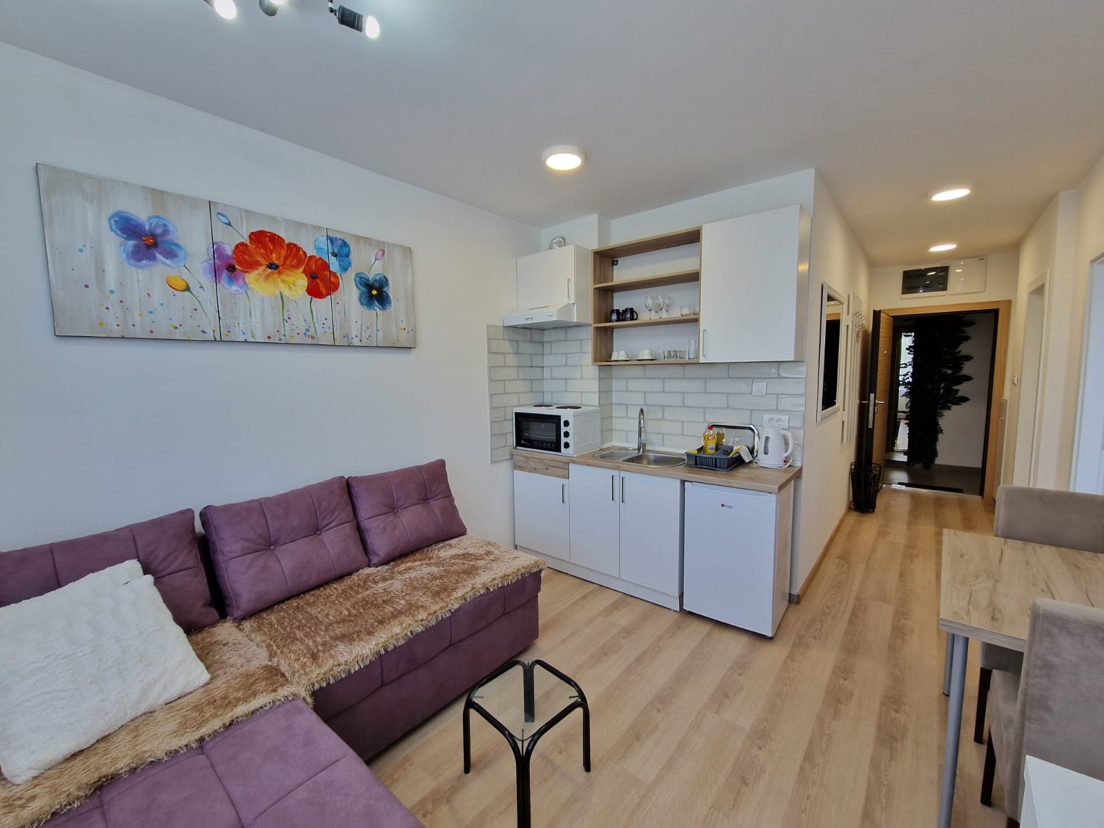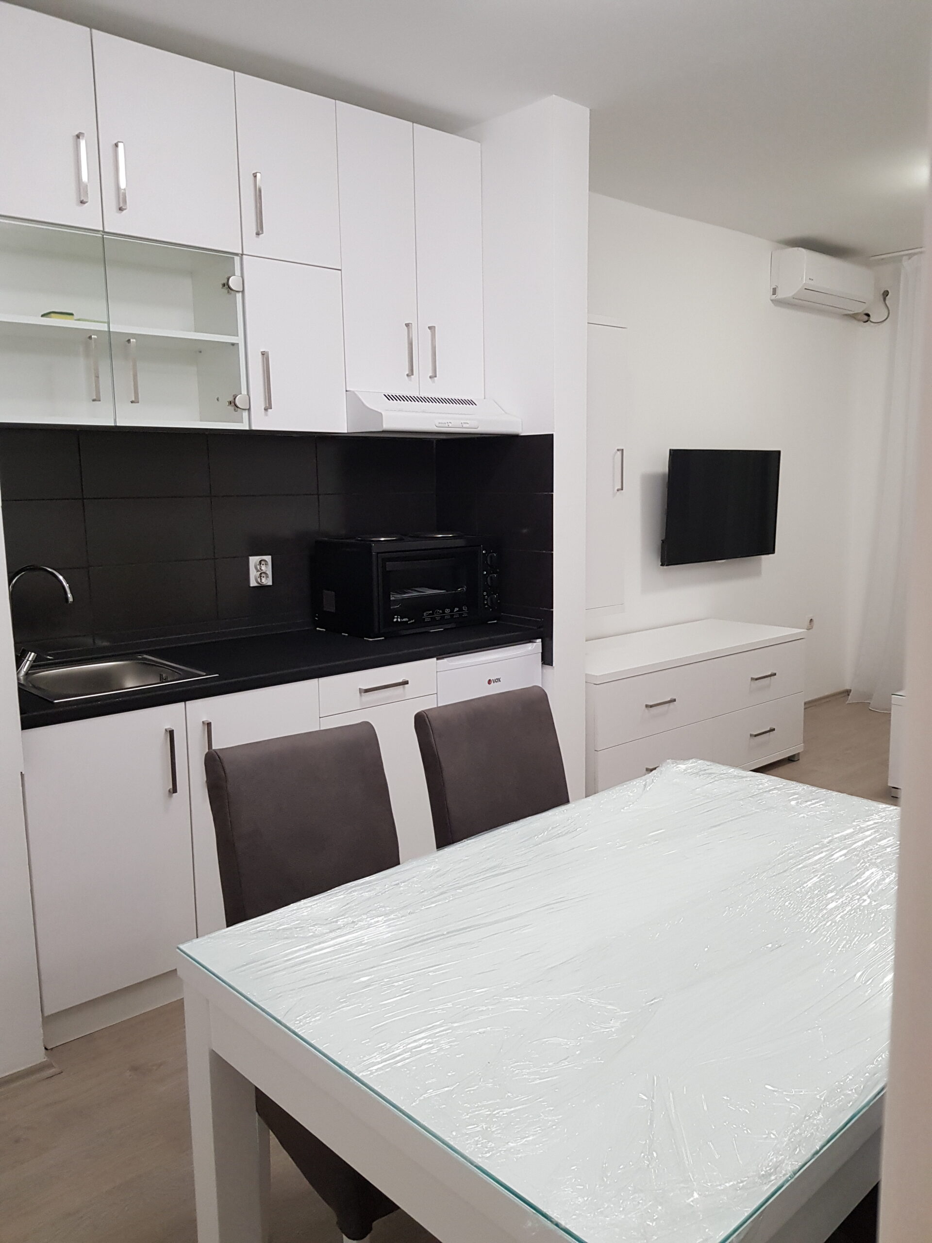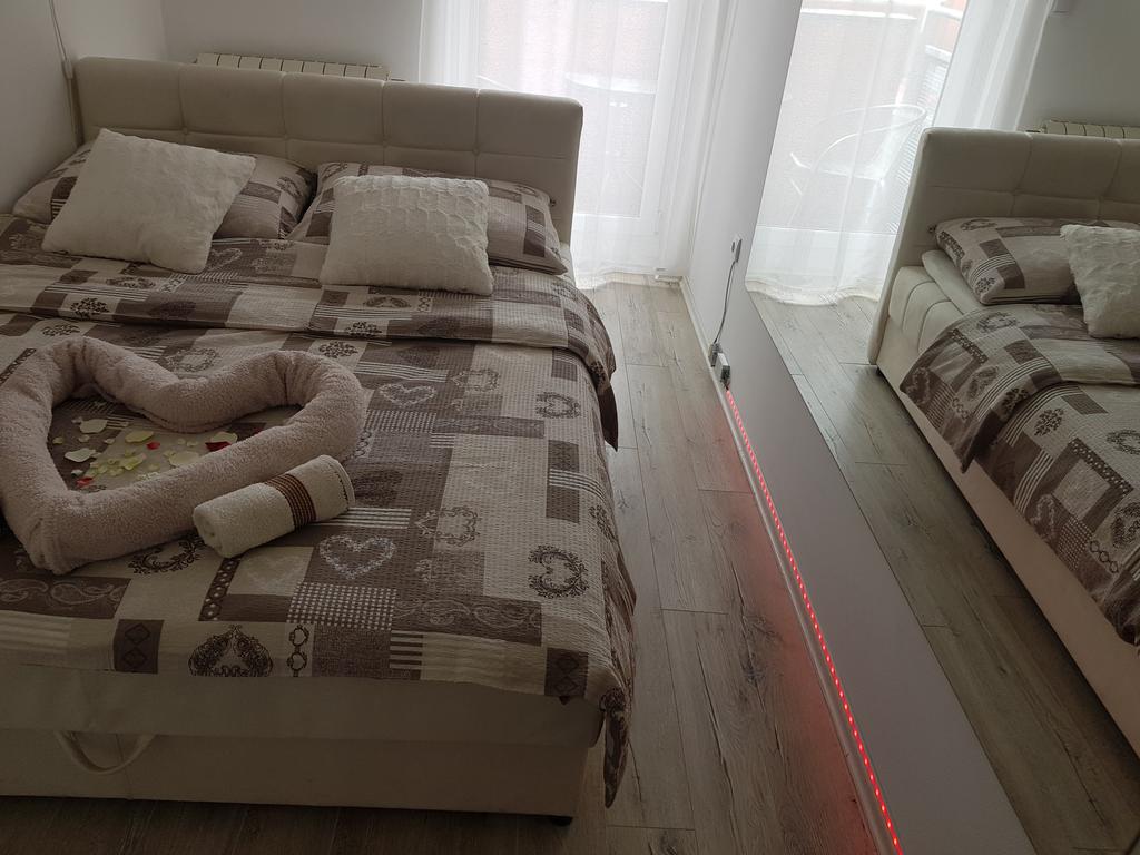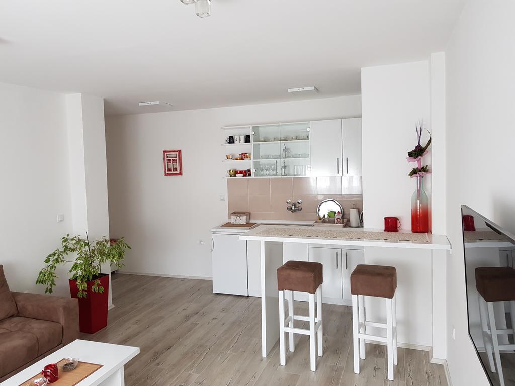 Nov, jednosoban apartman, nalazi se na četvrtom spratu novosagrađene zgrade sa liftom kompletno opremljen, sa malom terasom. Iako najmanji po površini, izuzetno je funkcionalan, svetao i pogodan za kvalitetan odmor.