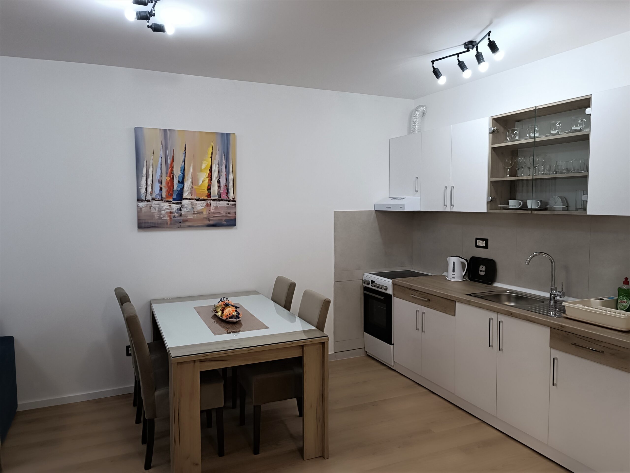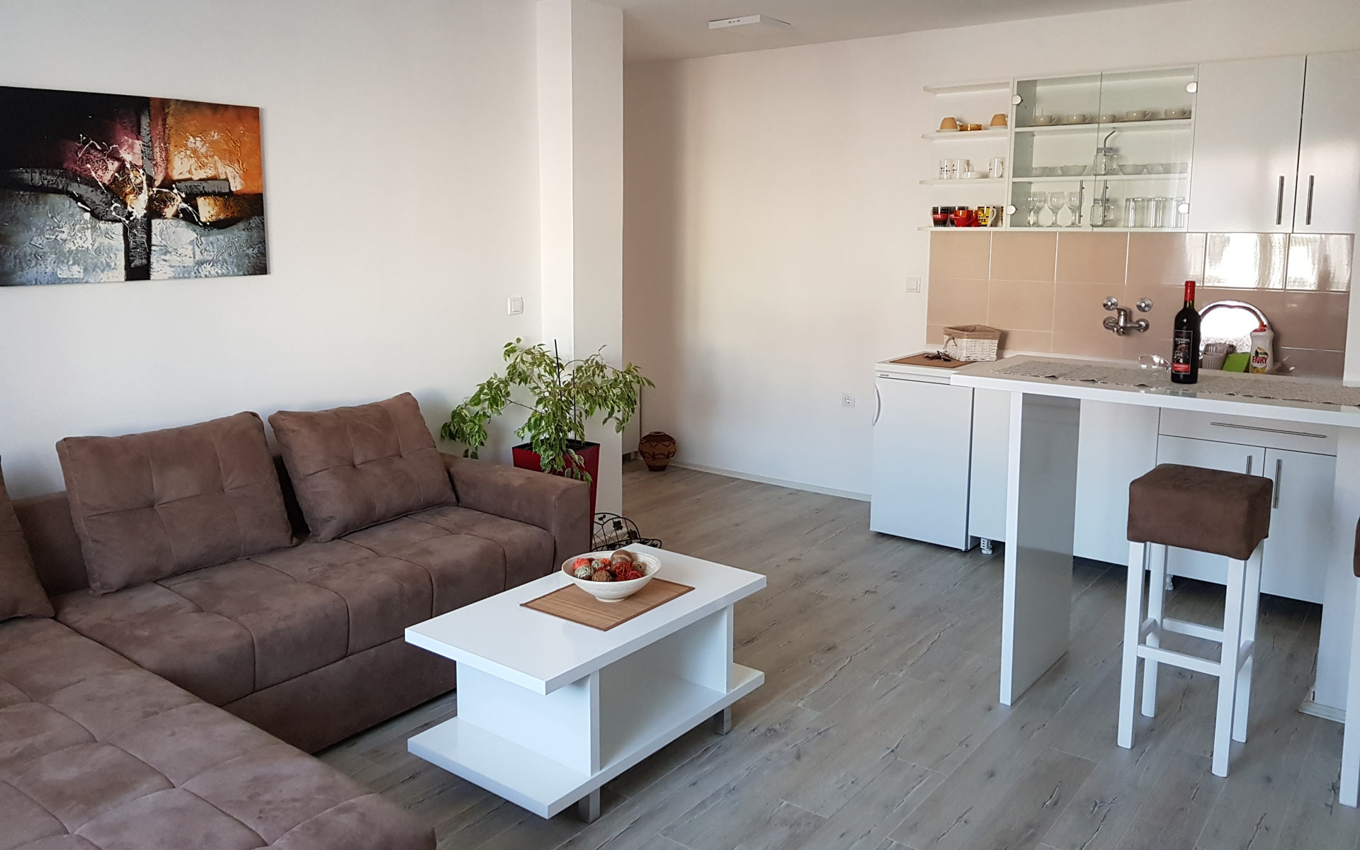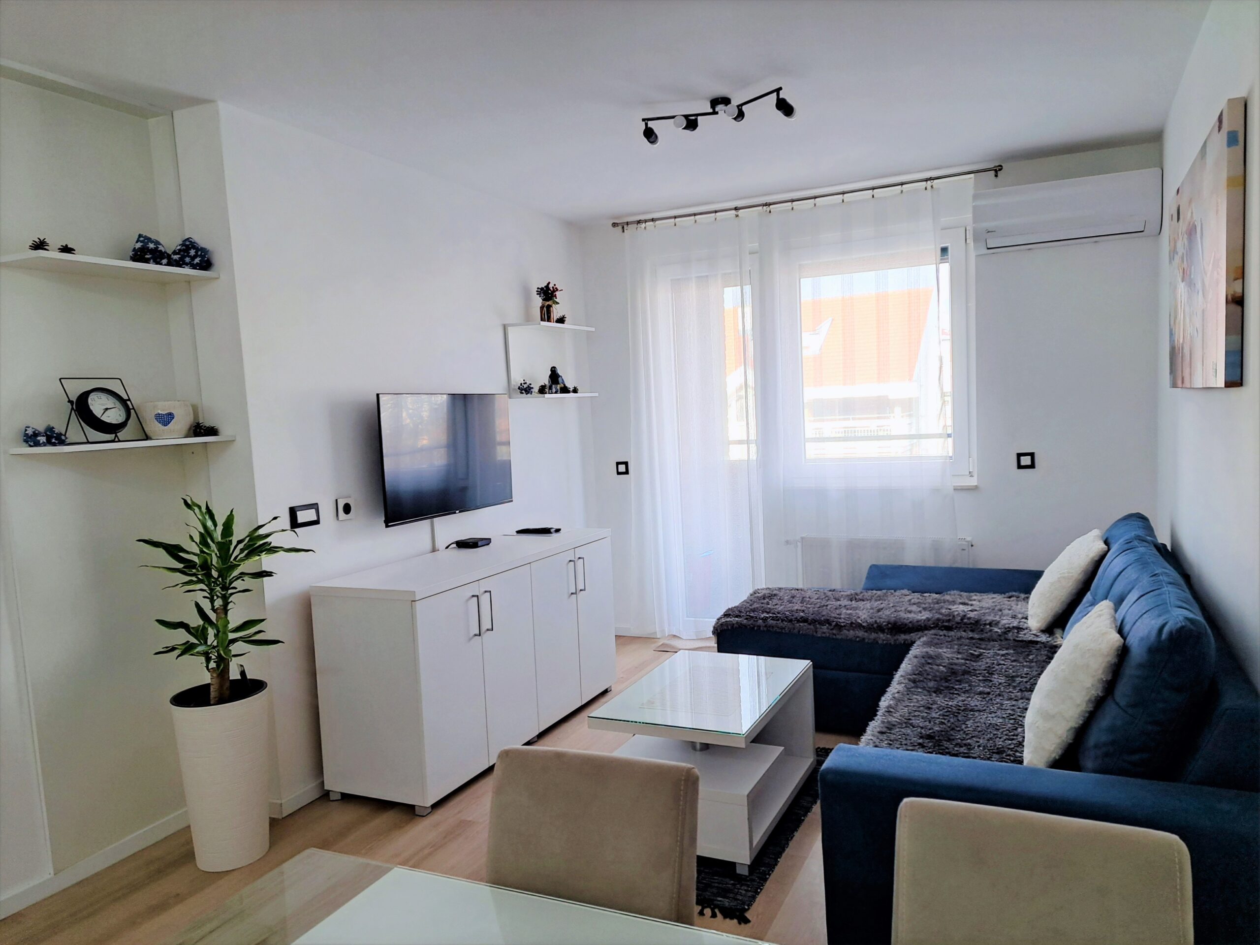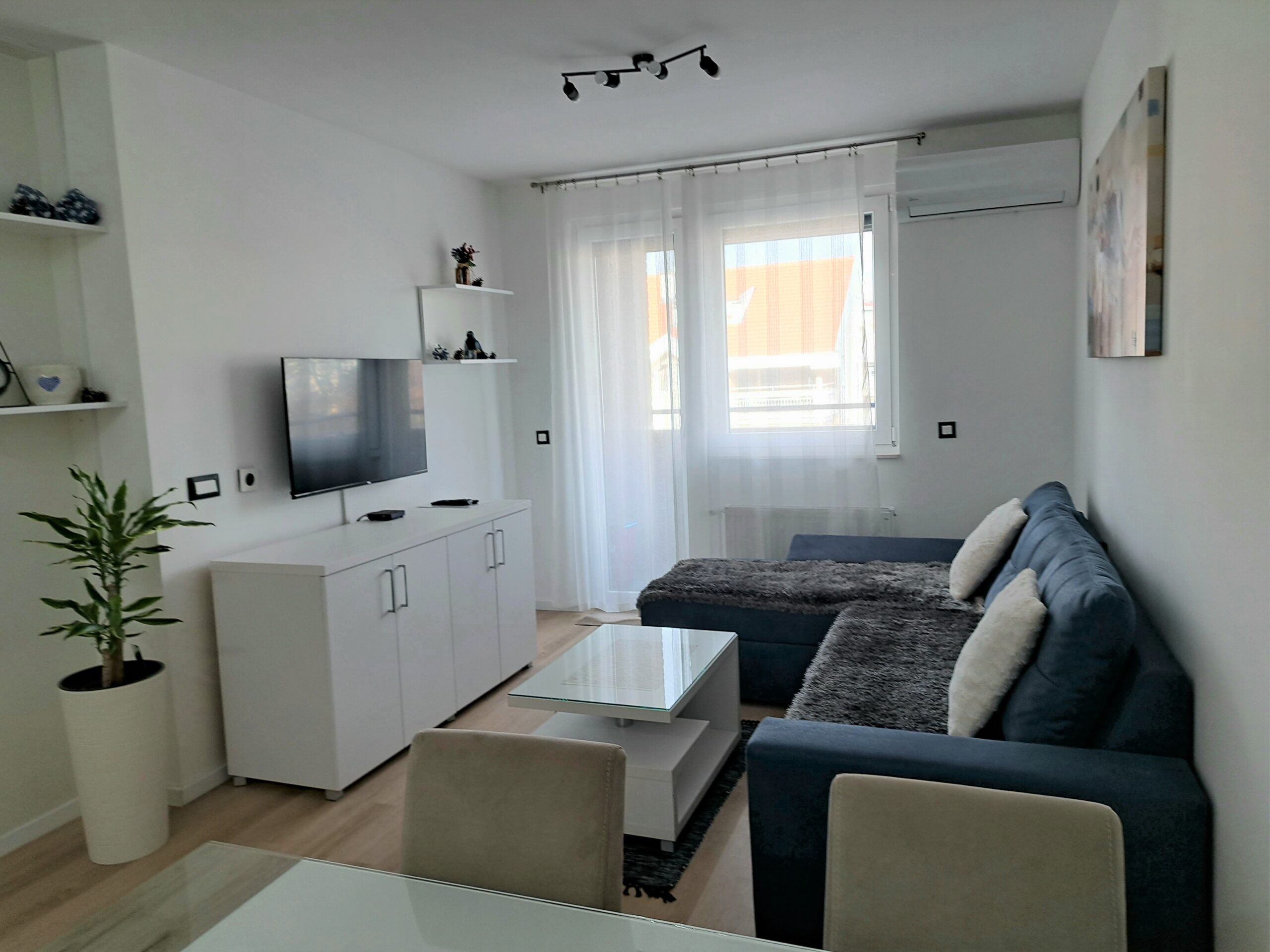 Nov, jednosoban apartman, nalazi se na četvrtom spratu novosagrađene zgrade sa liftom kompletno opremljen, sa malom terasom. Iako najmanji po površini, izuzetno je funkcionalan, svetao i pogodan za kvalitetan odmor.