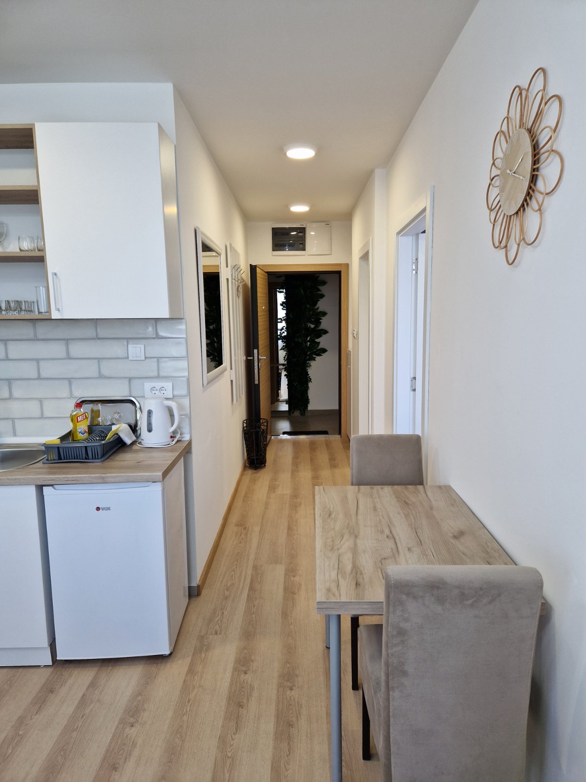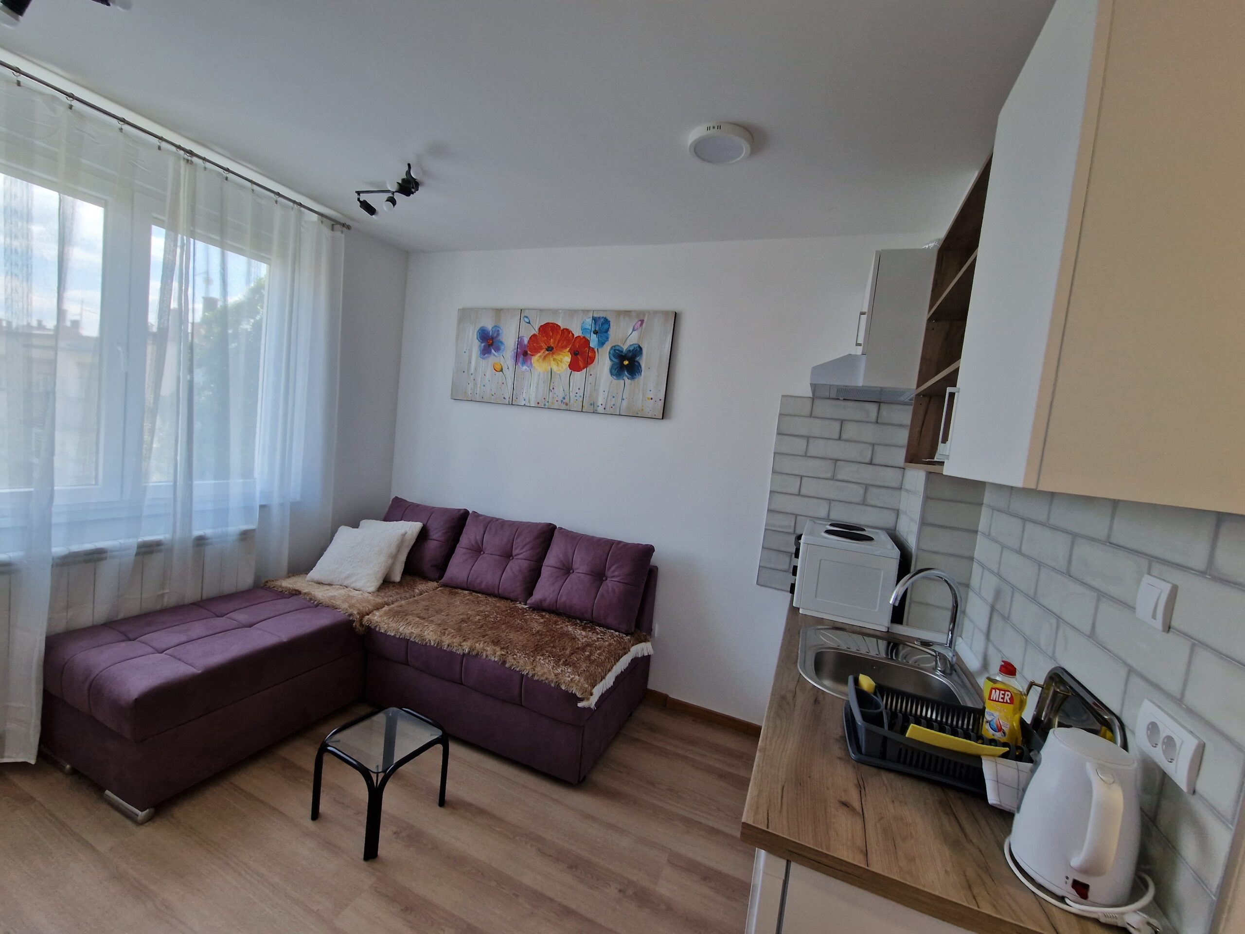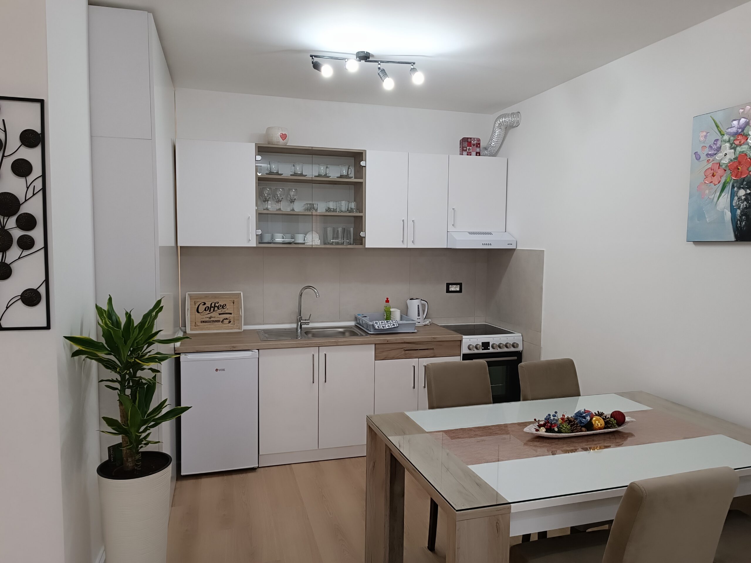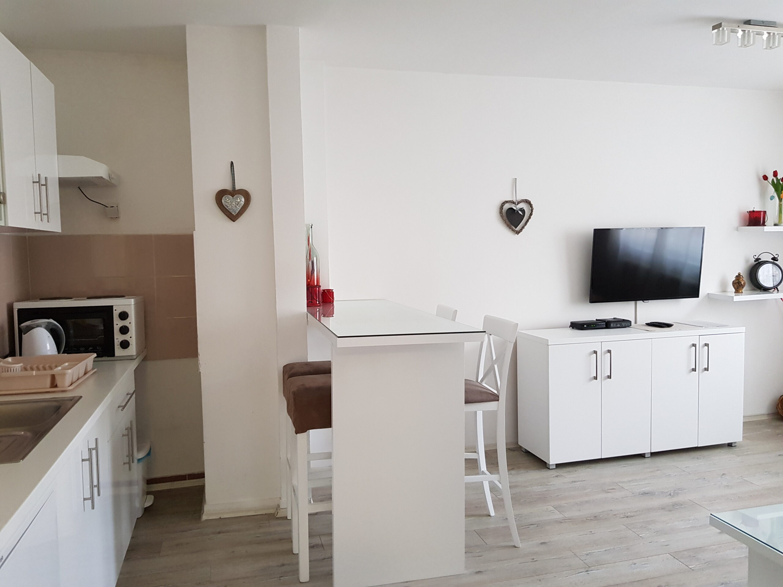 Nov, jednosoban apartman, nalazi se na četvrtom spratu novosagrađene zgrade sa liftom kompletno opremljen, sa malom terasom. Iako najmanji po površini, izuzetno je funkcionalan, svetao i pogodan za kvalitetan odmor.