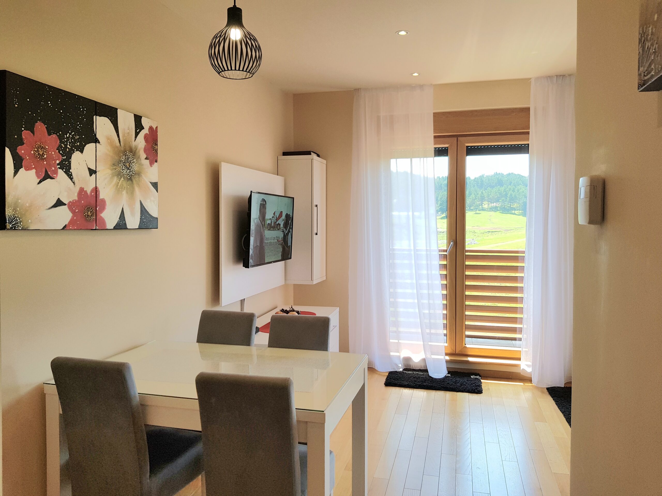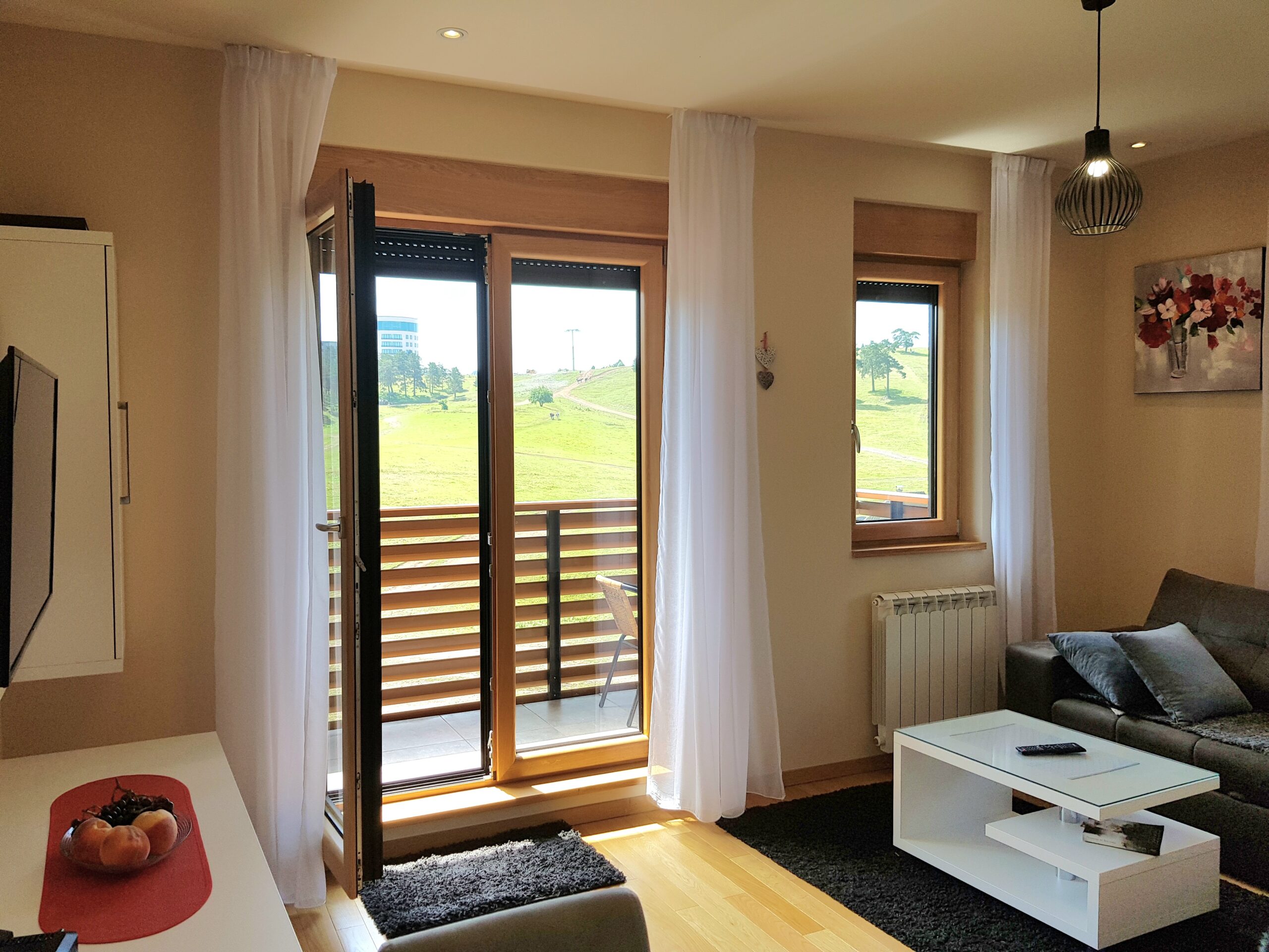 Nov, jednoiposoban apartman na III spratu iste zgade kao i Apartman GEA 12, sa pogledom na Obudovicu i početnu stanicu gondole, svetao je, osunčan, komforan, moderno namešten i kompletno opremljen za udoban boravak gostiju. Preko puta autobuske stanice i pijace, sa liftom, garažom, bazenom i spa centrom – uz doplatu, kao i besplatnim parking mestima ispred zgrade.