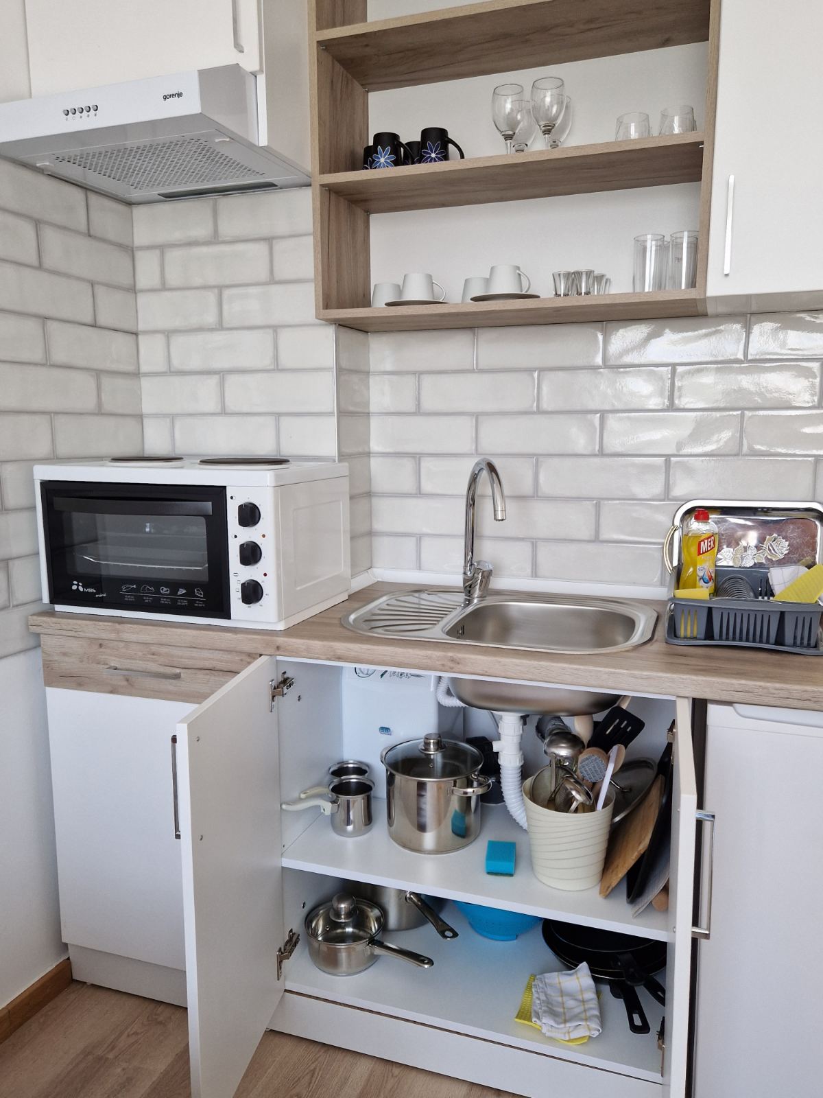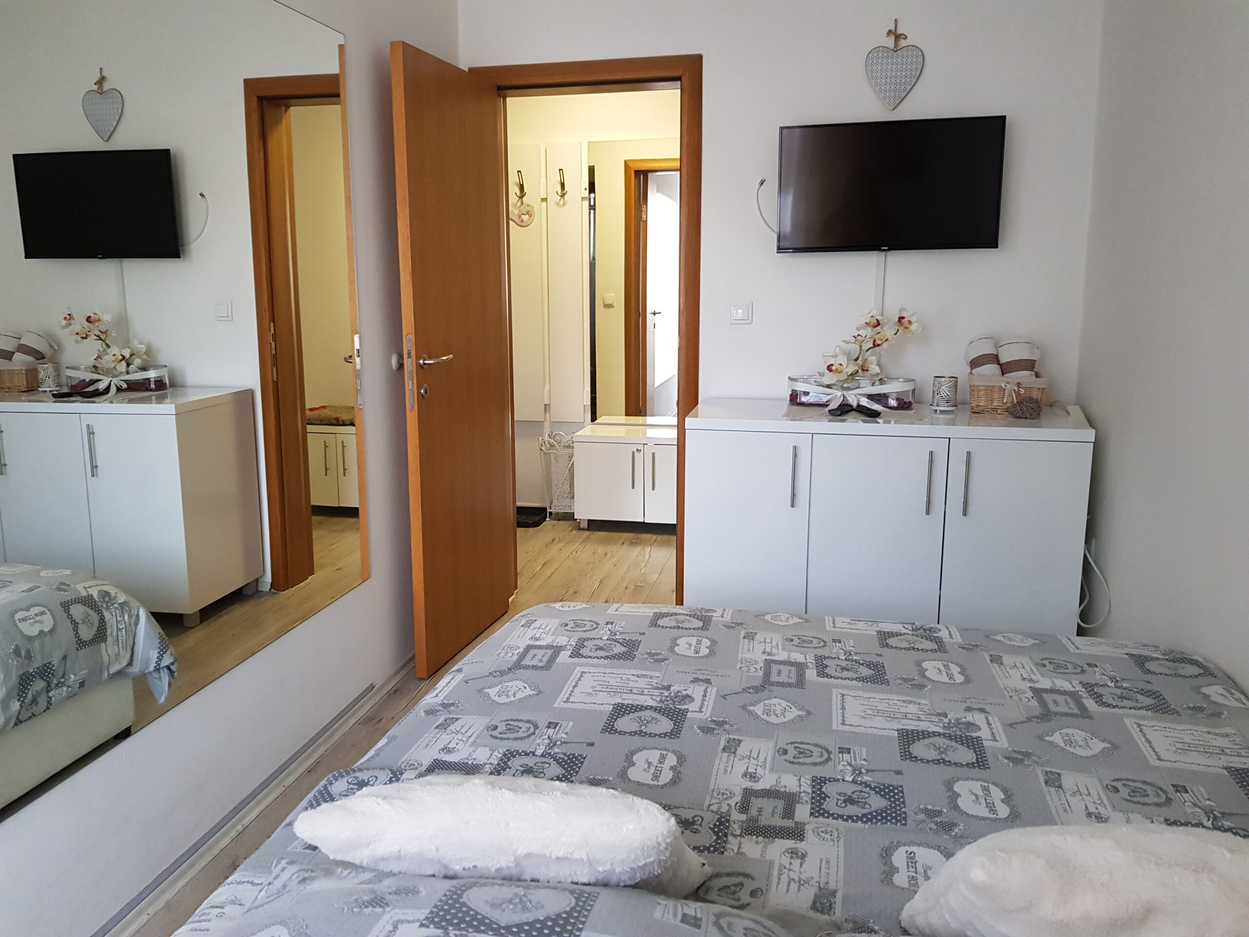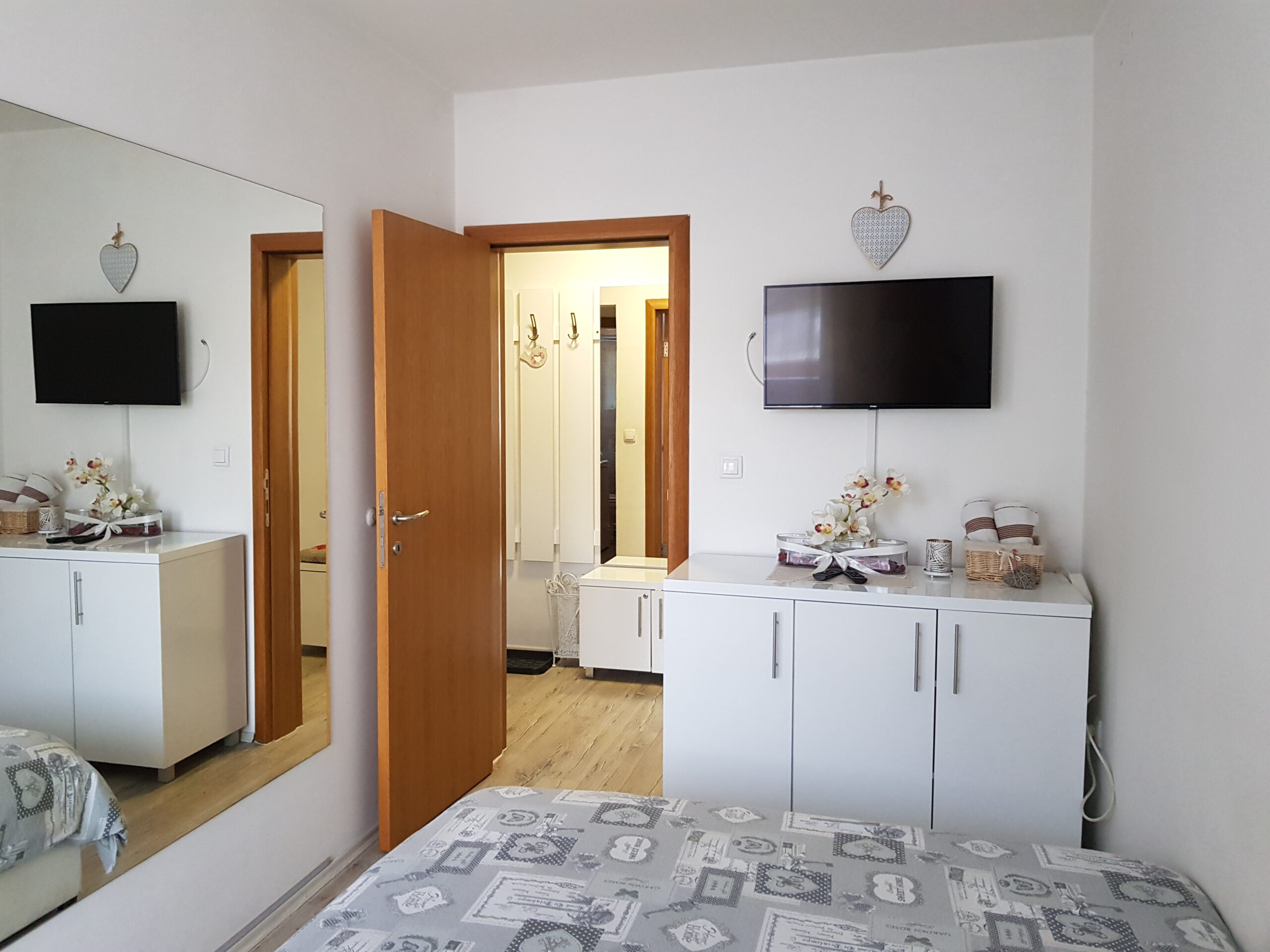 - Pogodnosti / Sadržaji: Besplatan parking, Besplatan Wi-Fi, Dormeo prostirke, Fen, Frižider, Kablovska, Klima uređaj, Mini šporet sa rernom, Papuče, Pegla i daska za peglanje, Peškiri, Terasa, TV (LED), Veš mašina