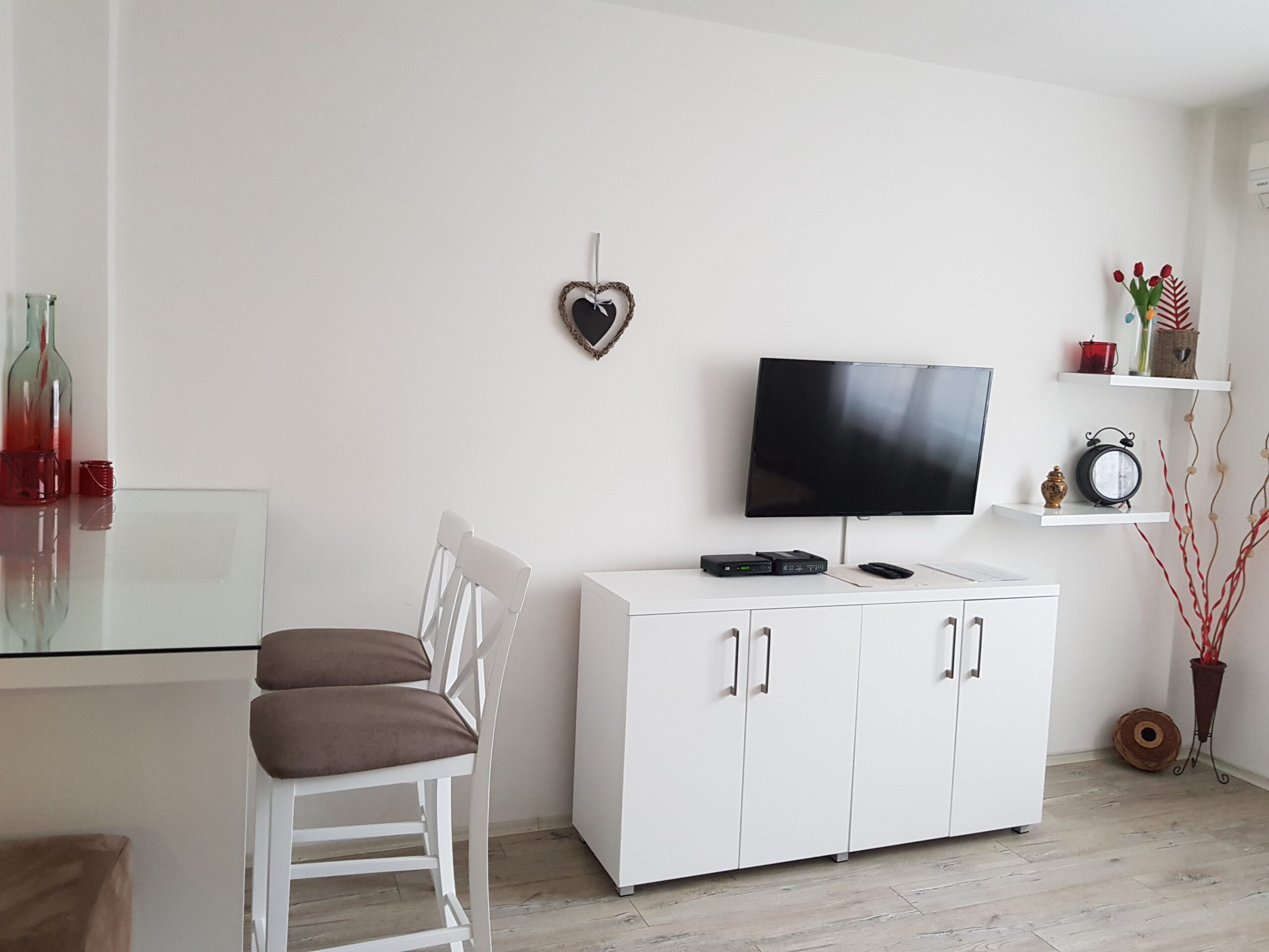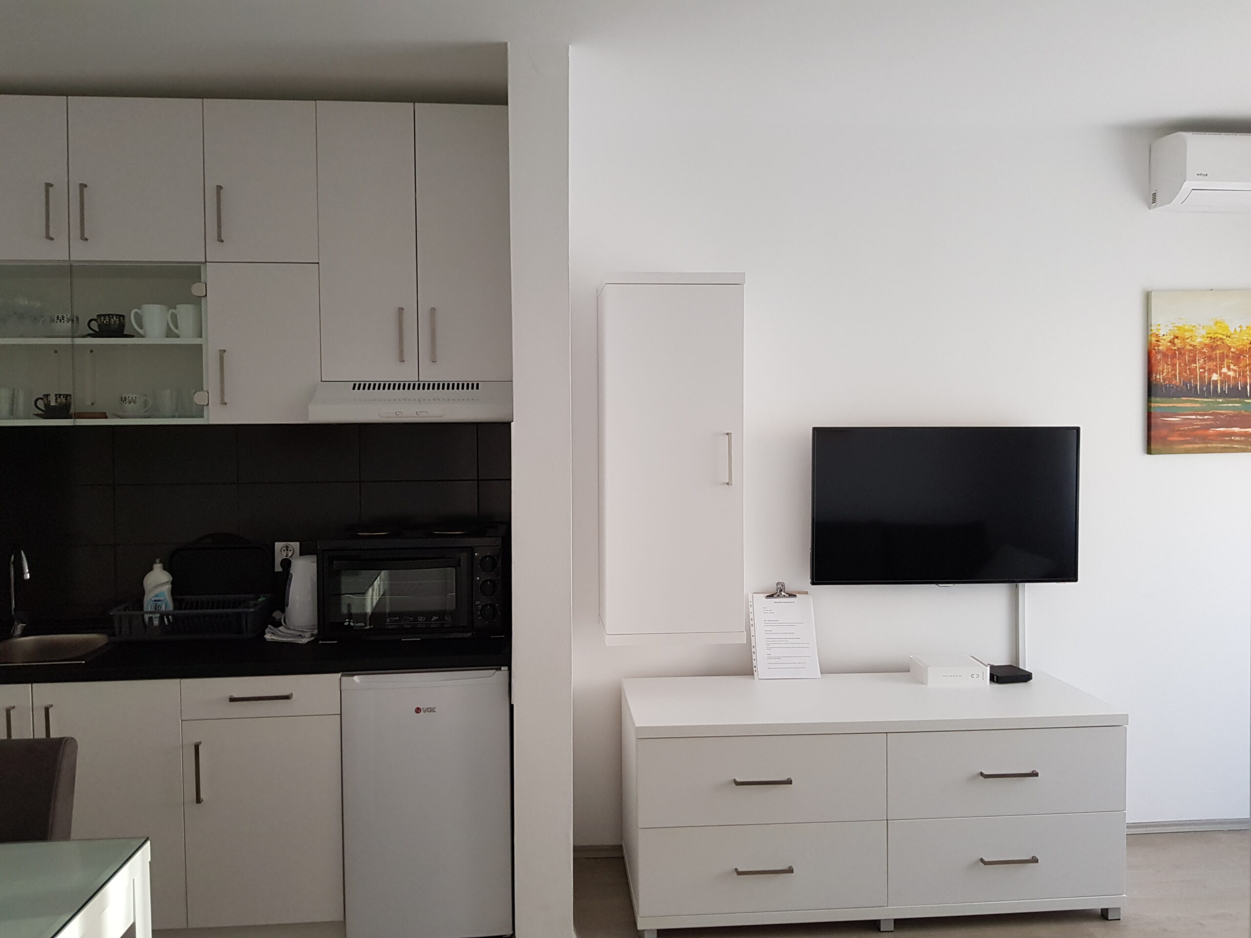 - Pogodnosti / Sadržaji: Besplatan Wi-Fi, Dormeo prostirke, Fen, Frižider, Kablovska, Klima uređaj, Mini šporet sa rernom, Papuče, Parking (uz doplatu), Pegla i daska za peglanje, Peškiri, Terasa, TV (LED)